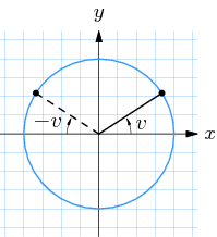 If one wants to know the sine or cosine of a double angle, that is \displaystyle \sin 2v or \displaystyle \cos 2v, one can write these expressions as \displaystyle \sin(v + v) or \displaystyle \cos(v + v) and use the addition formulas above and get the double-angle formulas