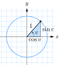 which is usually written as \displaystyle \sin^2\!v + \cos^2\!v = 1. |