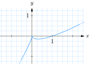 From this expression, we see that \displaystyle y' is not defined for \displaystyle x = 0 (which \displaystyle y is however). This means that the function has a singular point at \displaystyle x=0.