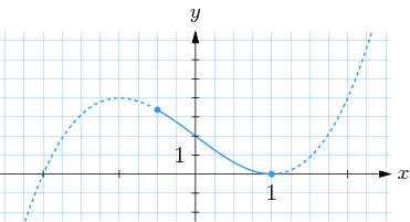 The figure shows the function with the whole graph as a dashed curve , and with the part that is within the given interval as a continuous curve.