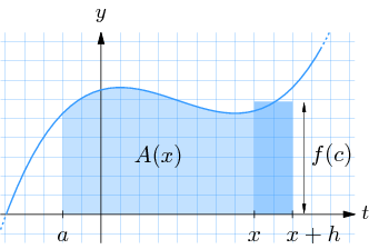 | \displaystyle \frac{A(x+h)-A(x)}{h} = f(c)\,\mbox{.} |