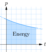 | A solar cell which has been exposed to light of power p will have received energy that is proportional to the area under the above graph. | The force F applied to an object along the direction of its motion does work that is proportional to the area under the above graph. | A capacitor that is charged by a current i will receive a charge which is proportional to the area under the above graph. |