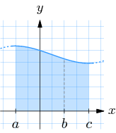 - \displaystyle \int_{a}^{\,b} f(x) \, dx + \int_{b}^{\,c} f(x)\, dx = \int_{a}^{\,c} f(x)\, dx\,\mbox{.}