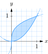 Between \displaystyle x=0 and \displaystyle x=1, \displaystyle \sqrt[\scriptstyle 3]{x}>x^2 is true, thus the area is