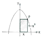 To begin with, we note that, because \displaystyle P should lie in the first quadrant, \displaystyle x\ge 0 and also \displaystyle y=1-x^2\ge 0, i.e. \displaystyle x\le 1. We should therefore look for the maximum of \displaystyle A(x) when \displaystyle 0\le x\le 1\,.