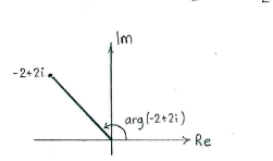 | \displaystyle \arg (-2+2i) = \frac{\pi}{2} + \alpha = \frac{\pi}{2} + \frac{\pi}{4} = \frac{3\pi}{4}\,\textrm{.} |