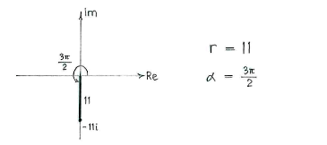 \displaystyle 11\Bigl(\cos\frac{3\pi}{2} + i\sin\frac{3\pi}{2}\Bigr)\,\textrm{.}