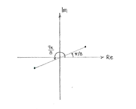 which corresponds two solutions, because all even values of \displaystyle n give the argument \displaystyle \pi/8, to within multiples of \displaystyle 2\pi, and all odd values of \displaystyle n give the argument \displaystyle 9\pi/8, to within a multiple of \displaystyle 2\pi.