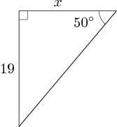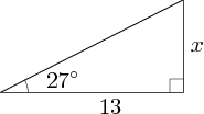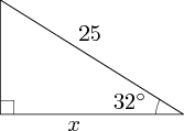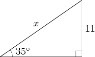 Using the trigonometric functions, determine the length of the side marked\displaystyle \,x\,