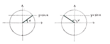 where \displaystyle u has a fixed value, there are usually two angles \displaystyle v in the unit circle which ensure that the equality holds: