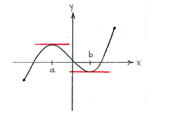 There are two points, \displaystyle x=a and \displaystyle x=b (see picture below), where the function has a horizontal tangent and hence a derivative equal to zero. These are the functions critical points.