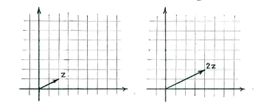 If we treat \displaystyle z and \displaystyle w as vectors, then \displaystyle 2z is the vector which has the same direction as \displaystyle z, but is twice as long.