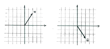 If, on the other hand, we interpret the expression in terms of vectors, we must first understand the vector \displaystyle \bar{w} geometrically. When we take the complex conjugate of \displaystyle w, we change the sign of the imaginary part, which is the same as reflecting \displaystyle w in the real axis.