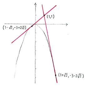 Thus, the answers are the points \displaystyle \left( 1-\sqrt{2} \right.,\left. -3+2\sqrt{2} \right) and \displaystyle \left( 1+\sqrt{2} \right.,\left. -3-2\sqrt{2} \right).